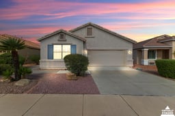This lovely home is located in the 55+ guard-gated Arizona Traditions resort! The popular Coronado model offers a spacious open great room with tall vaulted ceilings, well-designed split bedrooms, two baths, and an open den or office! Open kitchen features granite counters, pretty tile backsplash, stainless appls, and a large island for casual dining! Rich white plantation shutters on almost all windows! Warm laminate flooring and tile throughout, no carpet! The backyard has mature citrus trees, and can be an open canvas for your design! The North/South facing lot is fully fenced for pets and privacy. Plus this home as an HVAC system less than one year new! Arizona Traditions is a welcoming community with all the active adult amenities you expect, but with a small town feel! See it today